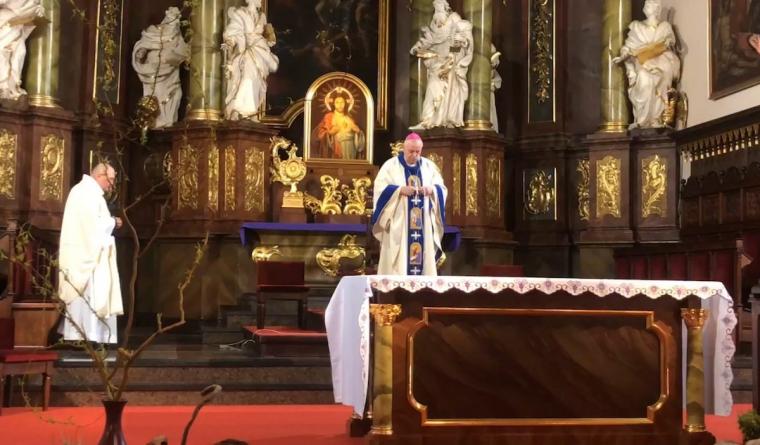 Eucharystia poprzedzona była modlitwą, którą prowadził biskup Zbigniew w intencji ustania epidemii, za chorych, za służby medyczne oraz za zmarłych.