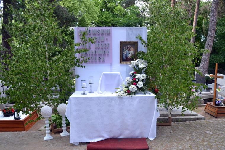 Po Eucharystii procesja wyruszyła do czterech ołtarzy, które usytuowane były na cmentarzu. Procesja przechodziła wśród grobów naszych przodków. To im zawdzięczmy naszą wiarę, ale także tradycje, które z tak wielką pieczołowitością pielęgnuje się w naszej wspólnocie i przekazuje kolejnym pokoleniom. Tak jak to już jest tradycją ołtarze przygotowali przedstawiciele poszczególnych rejonów naszej parafii. Pięknie prezentowały się ołtarze, ale Jezus znalazł także przygotowane miejsce w sercach parafian, którzy tak licznie w czasie Mszy Świętej przystąpili do Stołu Pańskiego.