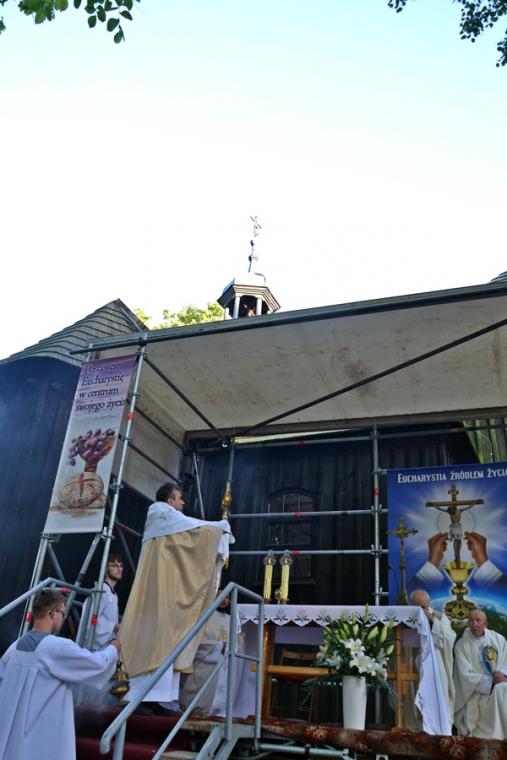 Msza Święta koncelebrowana rozpoczęła się przy ołtarzu polowym przy sanktuarium o godz. 18:30. Przewodniczył jej ks. proboszcz Krzysztof Ordziniak. Wraz z nim przy ołtarzu stanęli ks. kan. Andrzej Grabański, ks. kan. Grzegorz Ignor i ks. wikariusz Marcin Walczak. Rozpoczynając Eucharystię ks. kan. Krzysztof zaznaczył, że w Najświętszej Eucharystii zawiera się całe dobro duchowe Kościoła. Sprawia to, że człowiek wierzący pragnie spotykać się ze swoim Panem. Zaakcentował, że dobrze, że tradycją jest, że zakończenie oktawy Bożego Ciała odbywa się przy sanktuarium św. Rocha, wśród grobów naszych bliskich. Mamy okazję wyrazić im wdzięczność modlitewną za przekazany dar wiary. Jednocześnie zachęcał zebranych na Mikstackim Wzgórzu, by postawili sobie pytanie: Co ja przekazuję następnemu pokoleniu?