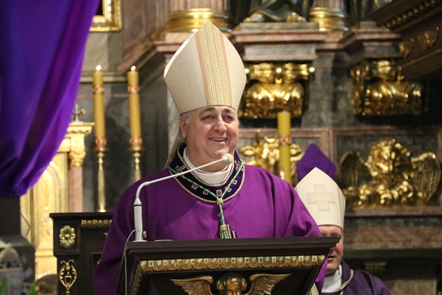 Dodał, że pełną odpowiedzią na słowo Boże jest czyn. - Starajmy się, by słyszane słowo Boże podczas liturgii słowa, rozważania męki Pańskiej, rekolekcji wielkopostnych, nabożeństw paschalnych, było wprowadzane w czyn. Byśmy byli, jak wasz Patron, ludźmi czynu – zachęcał hierarcha.