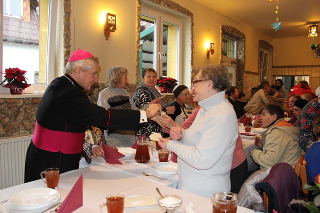 W swoim słowie biskup kaliski podziękował władzom miasta Kalisza, dzięki którym Caritas może wydawać codziennie 400 posiłków. Dziękował także dyrektorowi i pracownikom Caritas Diecezji Kaliskiej za służbę ludziom, którym dzisiaj ciężko żyje się.