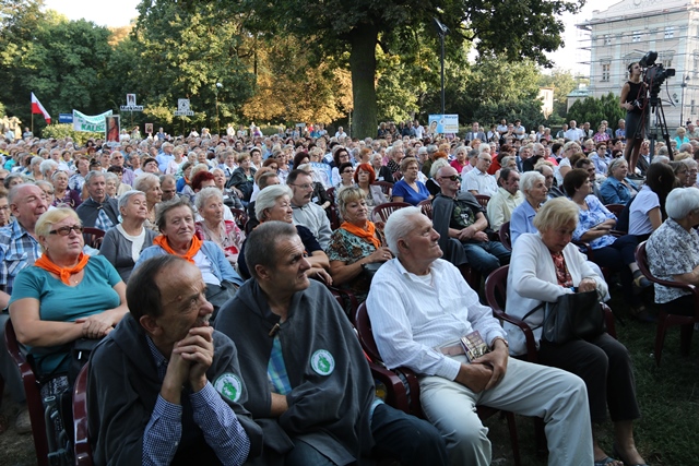 Po koncercie przybyłych na spotkanie pielgrzymów z całej Polski przywitał ks. prałat Jacek Plota, kustosz Narodowego Sanktuarium św. Józefa, który zaznaczył, że kaliskie sanktuarium poprzez trwające nieprzerwanie od 14-tu lat pierwszo-czwartkowe spotkania modlitewne w intencji rodzin i obrony poczętego życia staje się miejscem duchowej odnowy, żarliwej modlitwy oraz miejscem szczególnej formacji i refleksji nad problematyką obrony życia i rodziny w różnych jej aspektach. - Chcemy w ten sposób realizować testament przekazany nam przez św. Jana Pawła II tu w Kaliszu 4 czerwca 1997 r., który brzmi: „Bracia i siostry nigdy nie zapominajcie o tym jak wielką wartością jest rodzina /…/ która jest wspólnotą życia i miłości.” Pragniemy także odpowiedzieć na apel papieża Franciszka, który na zakończenie IX-go Światowego Spotkania Rodzin w Dublinie w niedzielę 26 sierpnia br. powiedział do rodzin: „Jesteście nadzieją Kościoła i świata./…/ Dzielcie się Ewangelią rodziny będącą radością dla świata” – powiedział kustosz kaliskiej bazyliki.