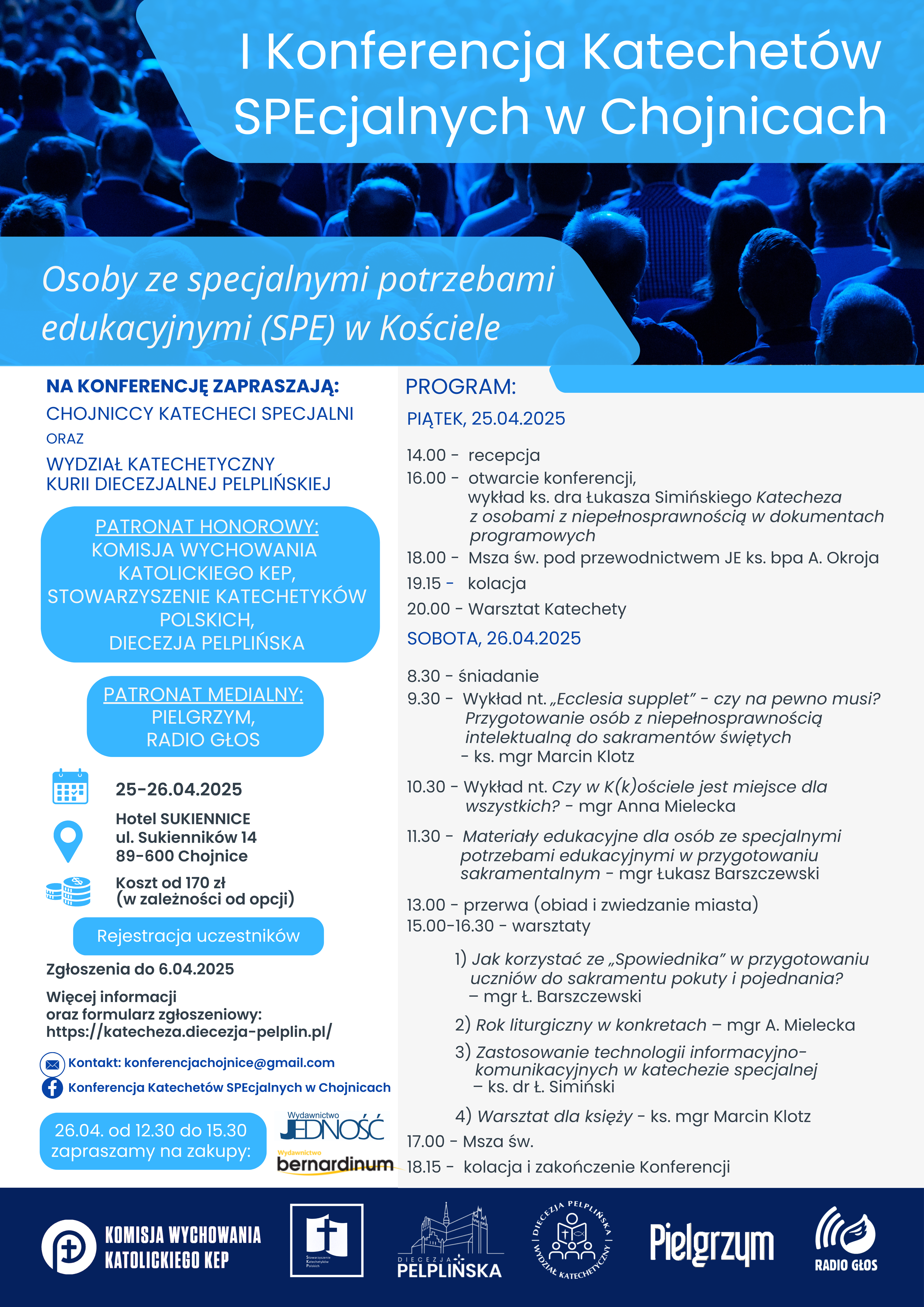 Zaproszenie skierowane jest do katechetów świeckich, sióstr zakonnych oraz księży, którzy na co dzień pracują z osobami ze specjalnymi potrzebami edukacyjnymi w różnym wieku, zarówno w szkołach specjalnych, ogólnodostępnych, integracyjnych, jak i w ośrodkach szkolno-wychowawczych oraz w parafiach.