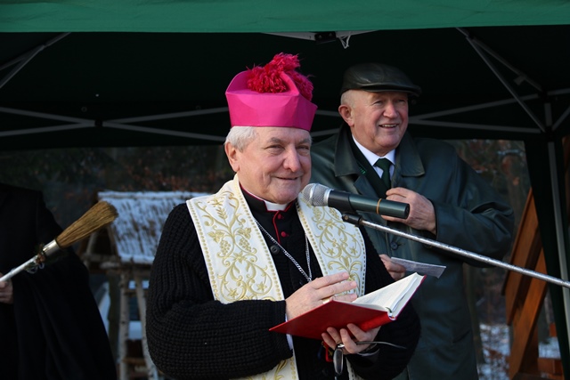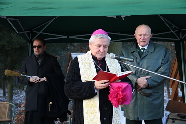 Biskup poświęcił miejsce kultu religijnego oraz pamięci ku czci leśników i myśliwych, a także posadził dąb.