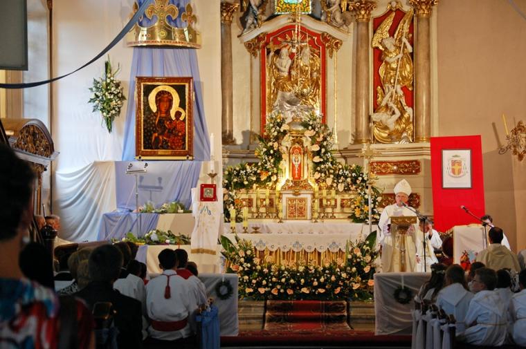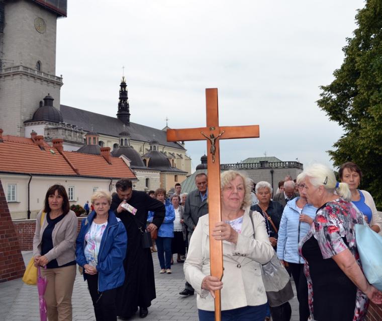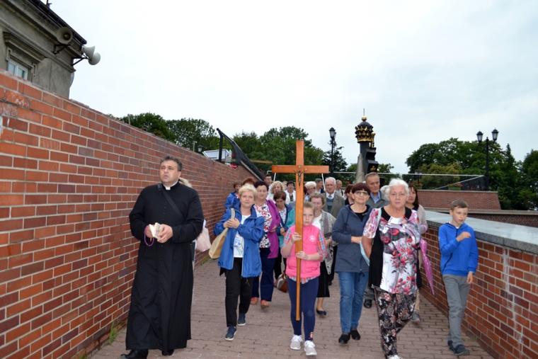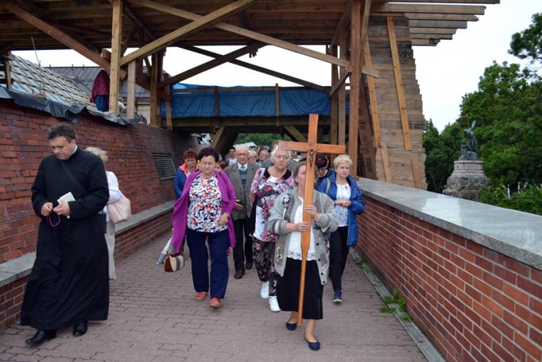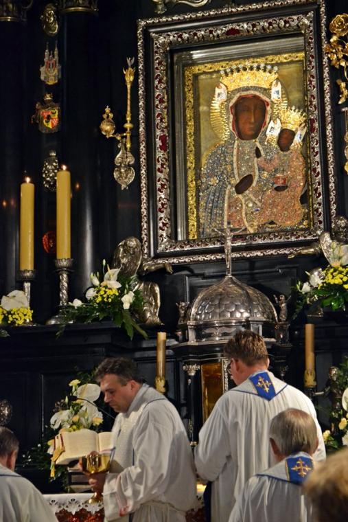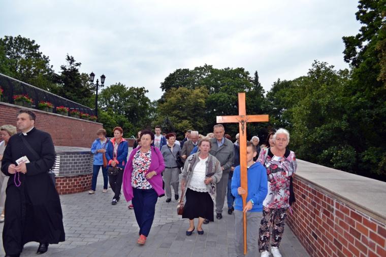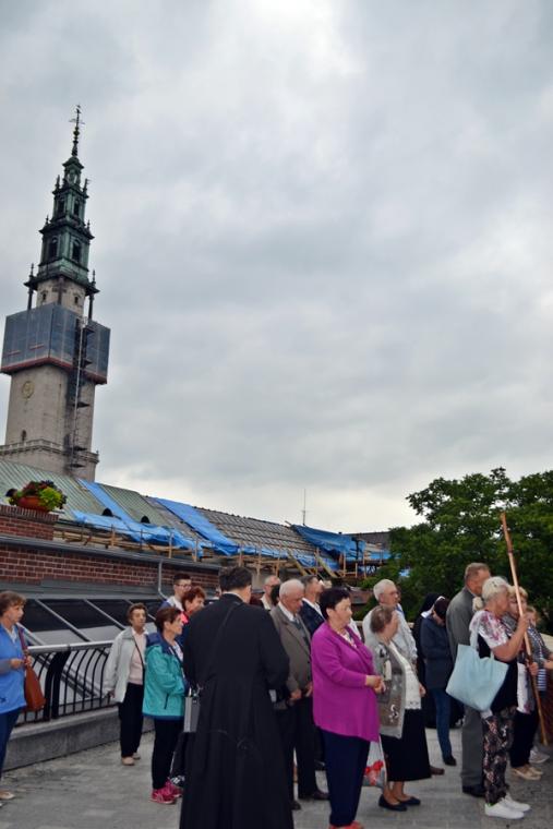 O godz. 16:00 uczestniczyliśmy w odprawianym przed obliczem Czarnej Madonny nabożeństwie różańcowym, podczas którego rozważane były tajemnice światła. Podczas pielgrzymki nie mogło zabraknąć Eucharystii. Uczestniczyliśmy w niej w Kaplicy Cudownego Obrazu, a ks. proboszcz sprawował ją w naszych intencjach. Po Mszy Świętej udaliśmy się na wały, by odprawić drogę krzyżową. Rozważania poszczególnych stacji koncentrowały się na problemie starości. Stanowiły zachętę do przeżywania tego okresu w duchu zaufania i zawierzenia Panu Bogu. Między poszczególnymi stacjami odmawialiśmy Koronkę do Miłosierdzia Bożego. Każdy kto czuł taką potrzebę mógł między stacjami przejąć krzyż. Po zakończonej drodze krzyżowej był czas na osobistą modlitwę i spotkanie z Matką i Jej Synem. Wiele osób w tym czasie modliło się w Kaplicy Cudownego Obrazu, ale także nawiedziło i zatrzymało się w Kaplicy Adoracji. Opiekun duchowy naszej pielgrzymki zachęcał nas, byśmy w tym pielgrzymkowym dniu rozważyli wszystkie tajemnice różańca. Zapewne był to czas, gdy wielu z nas kontemplowało tajemnice bolesne, powierzając Maryi także trudne, bolesne sprawy swoje i swoich bliskich. O godz. 19:00 uczestniczyliśmy w nabożeństwie czerwcowym. W słowie skierowanym do wiernych przewodniczący nabożeństwu Ojciec Paulin zwrócił uwagę na wezwanie Litanii do Najświętszego Serca Jezusowego zawarte w słowach: Serce Jezusa hojne dla wszystkich, którzy Cię wzywają. Nawiązał do kultu Serca Jezusowego. Zwrócił uwagę na obietnice dane Małgorzacie Marii Alacoque dla tych, którzy oddają cześć Jego Boskiemu Sercu. Zachęcał, by w naszych domach znalazło się miejsce dla krzyża, obrazu Jezusa, Matki Bożej, świętych. Gdy w Mikstacie rozległ się dźwięk dzwonów, przypominających o tym, że mamy być, pamiętać, czuwać, my wpatrując się w zatroskane oczy Czarnej Madonny uczestniczyliśmy w Apelu Jasnogórskim. Po Apelu wyruszyliśmy w drogę powrotną, podczas której odmówiliśmy tajemnice chwalebne różańca. To był piękny dzień...
