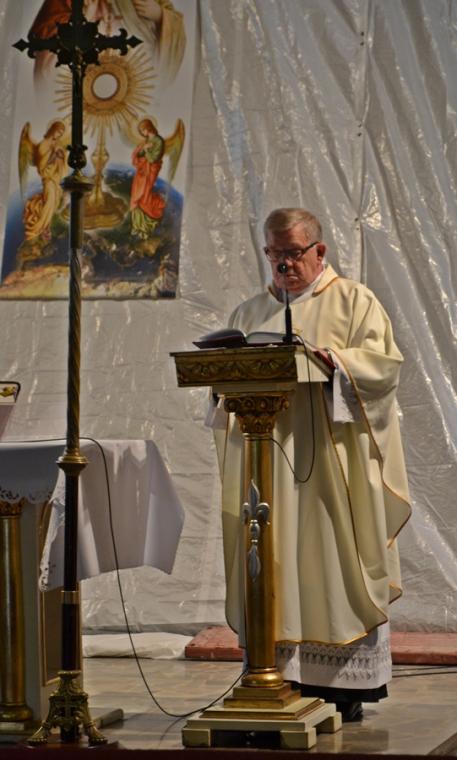 Słowa Ewangelii, które usłyszeliśmy podczas tej Eucharystii przeniosły nas myślami na Golgotę. Słowa rozważania skierował do wiernych ks. kan. Grzegorz Klapa. Przedstawił w nim rozwój kultu Serca Jezusowego. Rozpoczynając podkreślił, że ma on swoje źródło w Ewangelii. Żołnierz przebijając bok Jezusa zranił włócznią Jego serce. Kaznodzieja przywołał myśl św. Bonawentury, wskazującą, że przez ranę, która jest widoczna, możemy zobaczyć niewidoczną dla oczu ranę Jego miłości. Ksiądz kanonik Grzegorz zaakcentował, że kult Serca Jezusowego rozwijał się w Kościele powoli, ale wielcy mistycy szukali odpoczynku i schronienia właśnie w Sercu Jezusa. Zwrócił uwagę, że inspiracją do założenia zgromadzenia wizytek przez św. Franciszka Salezego był kult Serca Jezusowego. Celem zgromadzenia była adoracja Bożej miłości i oddawanie jej czci. W dalszej części homilii kaznodzieja przywołał postać Małgorzaty Marii Alacoque, której jak powiedział:„powierzono głoszenie żalów i skarg Bożego Serca na niewdzięczność człowieka. Jej przesłanie wzbudziło w społeczeństwie wielki odzew miłości i ducha wynagrodzenia”. Przywołując słowa św. Małgorzaty Marii zaakcentował, że „głównym celem nabożeństwa do Serca Jezusowego jest doprowadzenie dusz oziębłych do ukochania Jezusowej miłości”. Zaznaczył, że św. Małgorzata Maria w liście do jednej z sióstr wskazała trzy zamysły Jezusa, wyjaśniające żądanie kultu dla Jego Najświętszego Serca. Jak mogliśmy usłyszeć są nimi: przyciągnięcie zatwardziałych serc ludzkich i uchronienie ich od wiecznej zguby, doprowadzenie osób żyjących we wspólnotach do początkowej gorliwości i wzajemnej miłości przejawiającej się praktykowaniem miłości bliźniego. Ostatnim założeniem jest całkowite zapomnienie o sobie, pokora, czystość intencji, zgodność podejmowanych działań z wolą Bożą, całkowite zaufanie Bogu i umiłowanie cierpień na wzór Chrystusa. Kończąc rozważanie ksiądz kanonik Grzegorz powiedział: „Nabożeństwo do Serca Jezusowego winno być wynagradzającym sposobem zadośćuczynienia za ludzkie grzechy i niewdzięczność chrześcijan (…). Panie uczyń serca nasze według Serca Twego”.