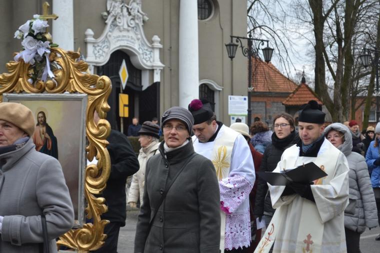 Po odprawieniu Nowenny do Miłosierdzia Bożego  z krzyżem, paschałem, figurą Chrystusa zmartwychwstałego, feretronami i sztandarami,  wyszliśmy na ulice naszego miasteczka. W naszą drogę do Emaus wyruszyliśmy z naszymi duszpasterzami: ks. kan. Krzysztofem Ordzinikiem, ks. Krzysztofem Lipińskim i ks. Mateuszem  Puchałą. Ks. Krzysztof Lipiński niósł zapalony paschał, natomiast ks. kan. Krzysztof wraz z ks. Mateuszem prowadzili nabożeństwo Drogi Światła. Pierwsze spotkanie ze zmartwychwstałym Panem rozważaliśmy przed kościołem pw. Świętej Trójcy. Warto dodać, że wspólnota parafialna przygotowuje się do obchodów 100-lecia jego konsekracji. Ostatnie, przy Diecezjalnym Sanktuarium Świętego Rocha. Sanktuarium położone jest w centralnym punkcie cmentarza. Tu wielu uczestników procesji ma groby swoich bliskich. Dla nich przesłanie “Pan zmartwychwstał” nabiera tu szczególnego znaczenia. Daje nadzieję na spotkanie z tymi, którzy poprzedzili nas w  pielgrzymce do Ojczyzny niebieskiej.