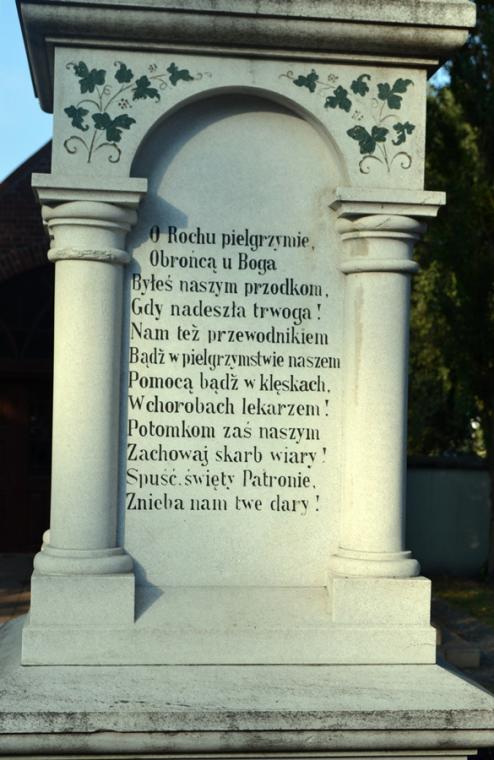 Pierwszym miejscem, które nawiedziliśmy w upalny sobotni dzień był położony na wzgórzu kościół pw. Świętego Rocha w Dobrzeniu Wielkim. To miejsce dla nas szczególne. Podobnie jak w Mikstacie znajduje się tu zabytkowy drewniany kościół pw. Świętego Rocha. W Dobrzeniu, podobnie jak w naszej parafii wierni czczą św. Rocha. Przy kościele oczekiwał na nas ks. proboszcz Jan Polok. Ks. Jan jest także wielkim czcicielem św. Rocha i autorem książki dla dzieci pt. Święty Roch pielgrzym miłości. W kościele był czas na chwilę modlitwy, a następnie ks. Jan przekazał nam kilka ciekawostek związanych z budową tej pięknej świątyni. Opowiedział nam o wystroju kościoła zwracając szczególną uwagę na obraz w ołtarzu głównym przedstawiający św. Rocha orędującego u Boga za chorymi. Z zainteresowaniem wysłuchaliśmy informacji o przebiegu uroczystości odpustowych w Dobrzeniu. Zachwycił wielu ten niewielki, ale niezwykle urokliwy kościół. Po wysłuchaniu informacji ks. Jana odmówiliśmy Litanie do Świętego Rocha. Przed świątynią znajduje się figura św. Rocha w stroju pielgrzyma. Pielgrzym to ktoś znajdujący się w drodze. My także pielgrzymowaliśmy. Było nam dobrze u św. Rocha w Dobrzeniu. Niestety, trzeba było wyruszać dalszą drogę.