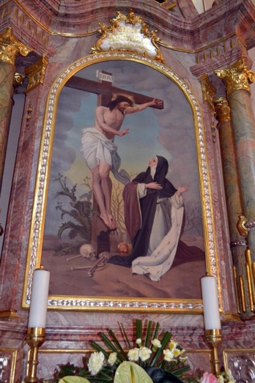 Po mszy Świętej ojciec franciszkanin przedstawił nam historię bazyliki i kultu św. Anny Samotrzeciej. Zwrócił naszą uwagę na malowidła na suficie przedstawiające sceny z życia św. Anny. Zwiedziliśmy także muzeum klasztorne gdzie zobaczyliśmy m.in. sukienki, które nakładane są na figurę św. Anny Samotrzeciej. Ich kolor, jak wyjaśnił nam ojciec uzależniony jest od okresu roku liturgicznego. Obejrzeliśmy makietę przedstawiającą sanktuarium św. Anny i dróżki kalwaryjskie. Wracając z muzeum zatrzymaliśmy się jeszcze na chwilę modlitwy w bazylice, gdzie odmówiliśmy Litanię do Świętej Anny. Czas szybko płynie o trzeba było wracać do domu. Powrót nie kończy jednak czasu pielgrzymowanie, ale jeden z jego etapów. Pielgrzymką jest całe nasze życie. Jej celem - domu Ojca. Mamy nadzieję, że gdy nadejdzie jej kres spotkamy się z Jezusem, Maryją, świętymi Joachimem i Anną, św. Jackiem, św. Rochem…