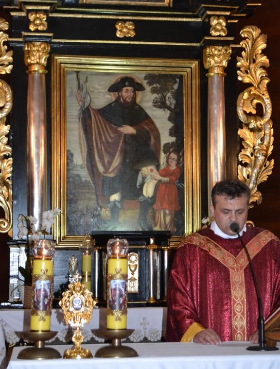 Rozpoczynając homilię celebrans wyraził słowa uznania dla zaangażowania ks. kan. Krzysztofa Ordziniaka za zaangażowanie w rozwój kultu św. Rocha oraz ożywianie ducha wiary w parafii. Podkreślił, że postawa ta nawiązuje do słów Ewangelii- kapłan traci swoje życie, aby mieć życie wieczne. Następnie przyznał, że stajemy przed trudnym wyzwaniem polaczenia rozważania o dwóch świętych: św. Wawrzyńcu i św. Rochu. Podkreślił, że to co ich łączyło to dążenie do świętości, męczeństwo, niezłomna wiara i oddanie sprawom Bożym. Nawiązując do słów błogosławieństwa podkreślił, że tylko Bóg wie ile osób jest prześladowanych za wiarę, ile w jej obronie oddało życie, ile jest w stanie dla Niego poświęcić wszystko, by ukazać światu rzeczywistość wynikającą z życia wiarą. W dalszej części homilii ks. Witold przywołał statystyki ukazujące skalę zjawiska prześladowania za wiarę w czasach współczesnych. Nawiązując do postaci św. Wawrzyńca podkreślił, że decydując się na życie wiarą powinniśmy być przygotowani na cierpienia, wyszydzanie za gesty wiary, pobożności. Kontynuując kapłan powiedział: Prześladowany dla Kościoła, dla Chrystusa to ubogi dla świata, ale bogaty dla Stwórcy”. Zaakcentował, że tym którzy nie znają Boga, albo znają, ale nie chcą żyć zgodnie z jego nauką wydaje się, że bogactwa tego świata nigdy nie przeminą . Podkreślił, że tym czego człowiek nie powinien nigdy stracić jest wiara w Boga.