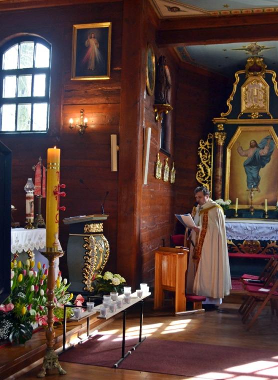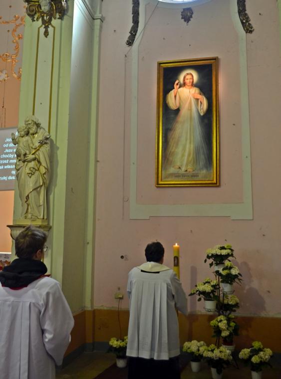 Przygotowani duchowo wkroczyliśmy w Niedzielę Miłosierdzia. Jest już tradycją, że w tym dniu sprawowana jest Eucharystia o wszelkie łaski potrzebne dla czcicieli Bożego Miłosierdzia z Mikstatu i Komorowa. O godz. 9:30 Msze św. w tej właśnie intencji sprawował ks. wikariusz Krzysztof Lipiński. Przed rozpoczęciem Eucharystii ks. kan. Krzysztof Ordziniak poświęcił obraz Jezusa Miłosiernego, który został ofiarowany do naszego kościoła przez p. Adama Joksa i jego małżonkę z dziećmi. Niedziela Miłosierdzia jest dniem szczególnych łask. Przepełnieni wiarą w potrzebę doświadczania Bożego Miłosierdzia przez nas samych, ale także bliskich, którzy poprzedzili nas w drodze do Pana, zebraliśmy się w tym szczególnym dniu, o godz. 15:00 w Diecezjalnym Sanktuarium Świętego Rocha na Koronce do Miłosierdzia Bożego, by polecać w niej bliskich zmarłych. Modlitwie przewodniczył ks. kan. Krzysztof Ordziniak. Po Koronce do Miłosierdzia Bożego odprawiane zostało nabożeństwo Drogi Światła. Mieliśmy okazję przeżyć 14 spotkań ze Zmartwychwstałym Panem. Na ołtarzu została ustawiona figura Chrystusa Zmartwychwstałego i czternaście lampek, które kolejno odpalane były od paschału. Towarzyszył temu śpiew „ My jesteśmy na ziemi…”. Ks. kan. Krzysztof odczytywał rozważanie poszczególnych spotkań z Jezusem zmartwychwstałym. Zapewne skłoniły one wielu do refleksji na jakim etapie drogi jestem? Którego spotkania ze Zmartwychwstałym Panem potrzebuję obecnie? Czy może zatrzymałem(am) się przy pustym grobie? A może tak jak Maria Magdalena szukam Pana? Warto dodać, że w zwieńczeniu ołtarza głównego znajduje się jej obraz. A może jak uczniowie z Emaus na swojej życiowej drodze nie dostrzegamy Jezusa? A może jak Tomasz potrzebujemy, by Pan umocnił naszą wiarę? Po nabożeństwie Drogi Światła w sanktuarium ks. kan. sprawował Mszę w intencji czcicieli Miłosierdzia Bożego z Mikstatu i Komorowa. Kiedyś ks. kan. odpowiedział na wezwanie Pana „ Pójdź za Mną” - tak. Dziś w Jego kapłańskich dłoniach chleb przemienił się w Ciało Chrystusa. Być może tak jak uczniowie poznaliśmy i doświadczyliśmy właśnie wtedy obecności Zmartwychwstałego. Niedziela Miłosierdzia rozpoczyna 74. Tydzień Miłosierdzia. Sami doświadczamy miłosierdzia od Boga, zwłaszcza w Sakramencie Pokuty i Pojednania. Czy to doświadczenie pomoże nam się otworzyć na potrzeby innych?