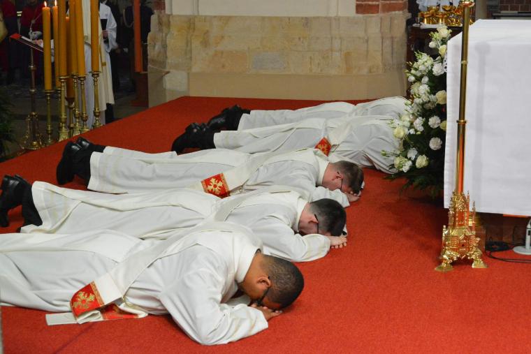 Po homilii wszyscy zgromadzeni modlili się litanią do Wszystkich Świętych, wypraszając dla przyszłych księży potrzebne łaski. Po litanii nastąpił obrzęd święceń. Po święceniach neoprezbiterzy po raz pierwszy stanęli przy ołtarzu, aby koncelebrować Eucharystię. W niedzielę w parafiach rodzinnych odprawią Msze prymicyjne, a już wkrótce Biskup legnicki pośle ich do wyznaczonych parafii.