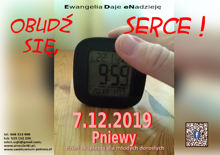 Serdecznie zapraszamy młodych dorosłych (w wieku 18-30 lat) 7 grudnia 2019 roku (w sobotę) na kolejny dzień skupienia (tym razem adwentowy) do Pniew, do Sanktuarium św. Urszuli Ledóchowskiej.