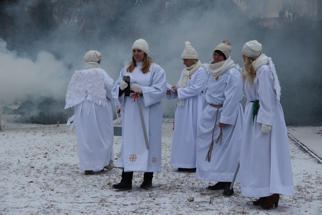 W postacie Mędrców ze Wschodu wcielili się proboszczowie parafii ostrzeszowskich: ks. prałat Leszek Szkopek, proboszcz parafii pw. NMP Wniebowziętej, ks. kanonik Paweł Maliński, proboszcz parafii pw. Chrystusa Króla i ks. kanonik Piotr Kowalek, proboszcz parafii pw. Świętej Jadwigi Królowej.