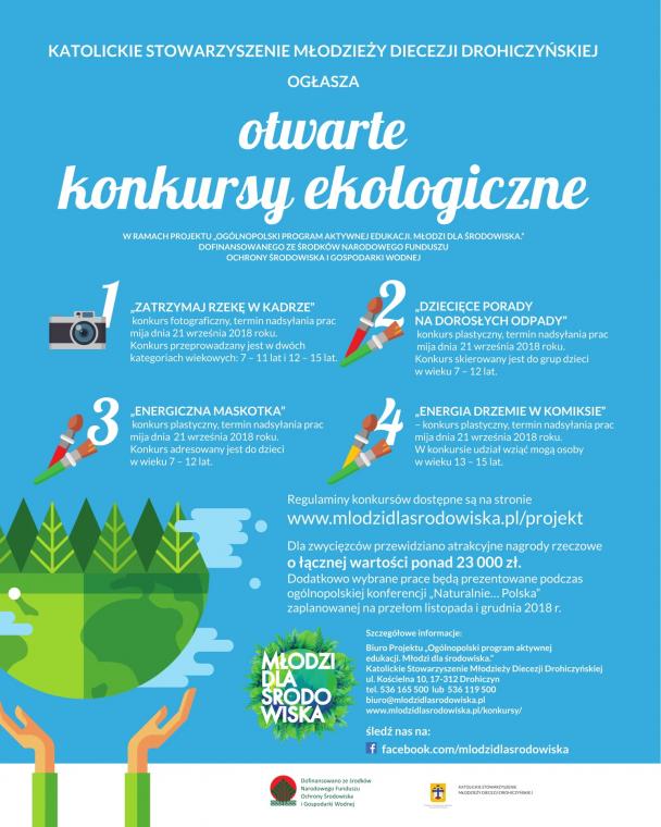 Już tylko tydzień został do końca konkursów ekologicznych realizowanych przez Katolickie Stowarzyszenie Młodzieży Diecezji Drohiczyńskiej w ramach projektu "Młodzi dla Środowiska", zapraszamy do udziału!