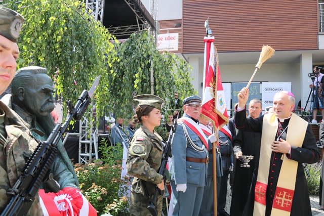 Po Mszy św. odbył się przemarsz w asyście Orkiestry Reprezentacyjnej Wojsk Lądowych z Wrocławia oraz Związku Piłsudczyków ulicami miasta pod pomnik Marszałka Piłsudskiego, gdzie dokonano oficjalnego odsłonięcia i poświęcenia pomnika.