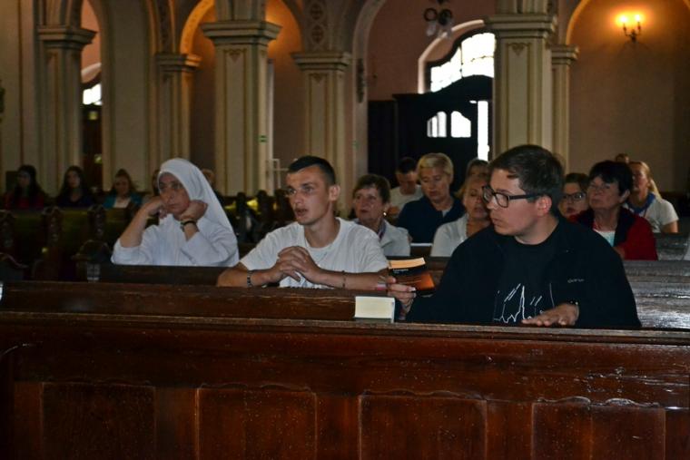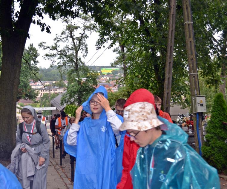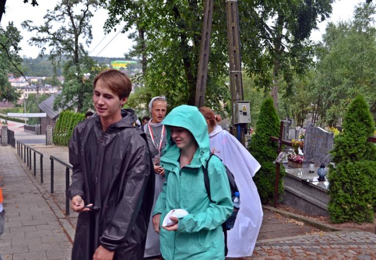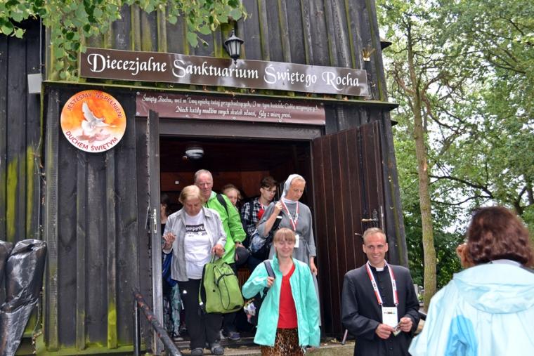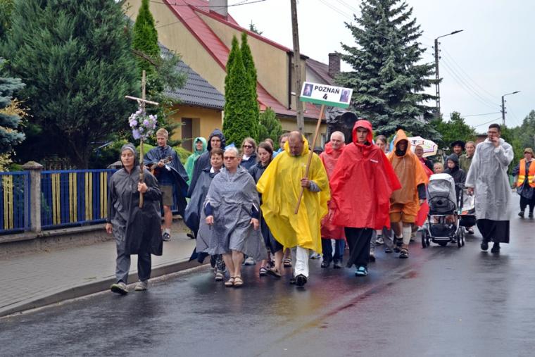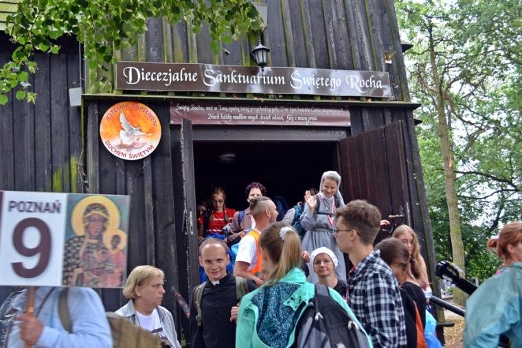 Wiele grup przeszło w ten lipcowy deszczowy dzień przez mikstacką parafię. Jak wspomniano, grupa 8 od lat przyjmowana jest na nocleg przez mieszkańców Mikstatu. Pątnicy z grupy 8 spotkali się o godz. 19:00 w kościele farnym pw. Świętej Trójcy na adoracji Najświętszego Sakramentu. Prowadzący je kapłan w słowach rozważania zwrócił uwagę na cztery etapy rozwoju wiary Piotra. Zachęcał jednocześnie zebranych w świątyni, by odpowiedzieli sobie na pytanie na jakim etapie jest ich wiara. Podczas adoracji była okazja do sakramentu pokuty i pojednania. Błogosławieństwo Najświętszym Sakramentem zakończyło modlitewną część spotkania. Z kolei grupa 9 nocowała w Komorowie. Od pięciu lat po drodze nawiedzają Diecezjalne Sanktuarium Świętego Rocha. Tu zostali powitani przez kustosza miejsca ks. kan. Krzysztofa Ordziniaka, który przybliżył im postać św. Rocha, akcentując rolę i znaczenie krzyża w Jego życiu. Podkreślił, że został on wymodlony rodziców przez wstawiennictwo Matki Bożej. Ks. kustosz zachęcał pątników, by „zaprzyjaźnili się” z tym Świętym, gdyż jest on patronem pielgrzymów. Wymowne było to spotkanie pielgrzymów ze Świętym Rochem. Przecież On też był pielgrzymem, więc doskonale rozumie ich ból, cierpienie, zmęczenie, ale jednocześnie może być dla nich wzorem wzajemnej służby, pomocy, głoszenie miłości Boga do człowieka właśnie na pielgrzymim szlaku. Następnie przy wystawionym Najświętszym Sakramencie pielgrzymi odśpiewali Koronkę do Miłosierdzia Bożego i wyruszyli w dalszą drogę do niedalekiego Komorowa, by tam nieco odpocząć. Rano obie grupy wyruszą na kolejny etap wędrówki… Taki jest pielgrzymi los. Jasna Góra coraz bliżej i już za pięć dni pątnicy staną przed tronem Matki i Królowej, by złożyć u Jej stóp swoje radości i troski, prośby i podziękowania.