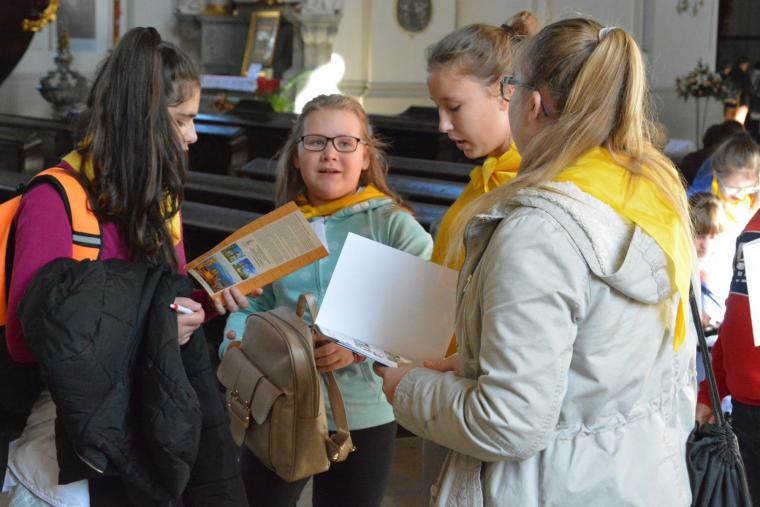 Kolejnym punktem spotkania była gra terenowa, w której uczestniczyła większość małych pielgrzymów. Z pomocą specjalnie przygotowanej książeczki-przewodnika po sanktuarium dzieci miały do wykonania konkretne zadania, dzięki którym poznawały także tajniki zabytków krzeszowskiego opactwa.