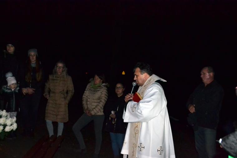 Następnie rozpoczęła się modlitwa różańcowa. Odmawialiśmy tajemnice światła. Ksiądz zachęcił, by każdy przedstawił Matce Bożej swoją intencję. Wymienił ponadto trzy intencje wspólne, dziękczynienia za przodków, którzy ustawili tę kapliczkę, za wszystkich, którzy zaangażowali się w jej odnowienie oraz za wszystkie te sprawy zebranych, które nie pozwalają nam jeszcze do końca zaufać Bogu. Podkreślił znaczenie i moc modlitwy wspólnotowej.