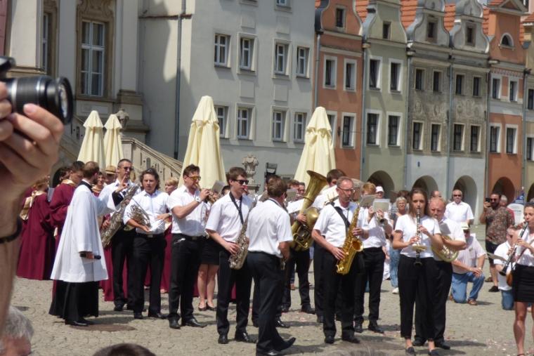 Po Mszy św. wyruszyła procesja, z udziałem wiernych z legnickich parafii, duchowieństwa, sióstr zakonnych, alumnów seminarium, chóru katedralnego, orkiestry, przeszła ulicami miasta, zmierzając do sanktuarium św. Jacka, w którym przechowywane są Relikwie Ciała Pańskiego.