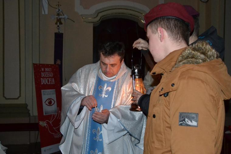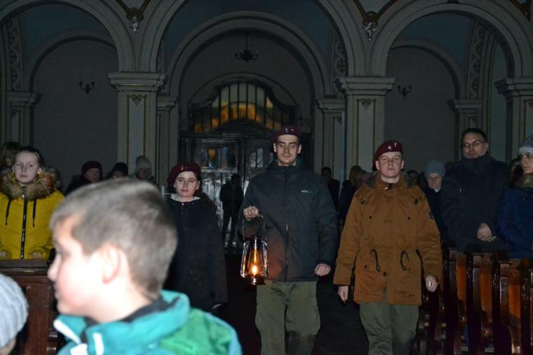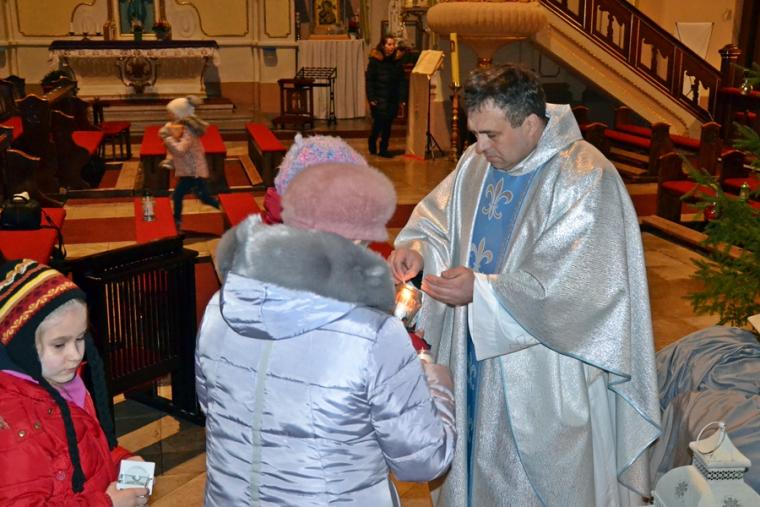 Po zakończeniu mszy świętej, przy banerze przedstawiającym Grotę Narodzenia Pana Jezusa ks. proboszcz zapalał świece, lampki przyniesione przez wiernych. Wiele osób zabrało do swoich domów Betlejemskie Światło Pokoju. Stojące przy ołtarzu w kościele i zaniesione do naszych domów Betlejemskie Światło Pokoju przypomina nam, że Pan jest już blisko, naprawdę blisko. Mobilizuje nas ono do czuwania i oczekiwania wraz z Maryją Józefem na przyjście Pana.