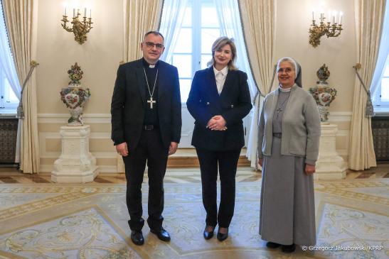 Podsekretarz Stanu w KPRP Agnieszka Jędrzak, która odpowiada za Biuro do Spraw Polonii oraz Biuro Odznaczeń i Nominacji, nakreśliła główne kierunki działań Prezydenta RP na rzecz Polaków za granicą oraz zapewniła o gotowości współpracy Kancelarii Prezydenta RP z Konferencją Episkopatu Polski i wsparcia projektów realizowanych na rzecz rodaków mieszkających poza Ojczyzną. W trakcie rozmowy poruszono również kwestie dbałości o pamięć historyczną oraz istotne znaczenie polityki odznaczeniowej Prezydenta RP, jako wyrazu wdzięczności i uznania dla zasług Polonii.