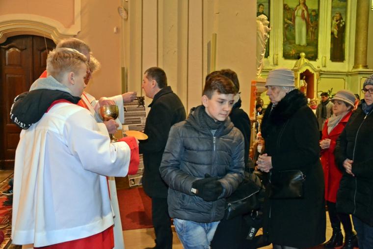 Kończąc zwrócił się ze szczególną prośbą do św. Agaty. Kilka dni temu trzech młodych mężczyzn z naszej parafii zginęło w wypadku samochodowym. Prośba była związana z tym tragicznym wydarzeniem. Ks. prałat Kazimierz prosił, by św. Agata wyprosiła młodym ludziom u Boga miłosierdzie, radość wieczną, a dla wszystkich opłakujących ich śmierć była umocnieniem w tym doświadczeniu, by pomogła przyjąć im wolę Bożą, chociaż jest ona tak trudna. Wiele ważnych słów padło podczas tej homilii. Warto do nich wrócić, bo refleksja nad nimi pozwoli na zmianę życia. A przecież był to odpustowy czas, czas szczególnych łask, ale i przemiany życia. Wraz z nami modliła się wspólnota TACY SAMI, uczestnicy wczasorekolekcji w Wojkowie, którzy po Eucharystii przezywali swoje spotkanie świąteczno- karnawałowe.