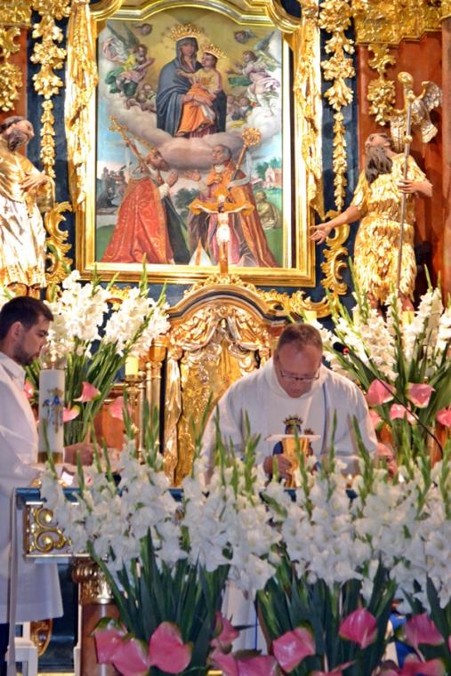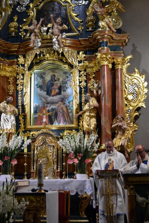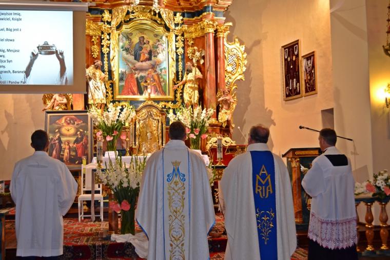 O godz.18:00 w sanktuarium sprawowana była Eucharystia. Przewodniczył jej ks. Szymon Grzeszkiewicz, wspólcelebransem był ks. Piotr Karasek, który wygłosił naukę rekolekcyjną.
