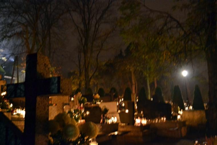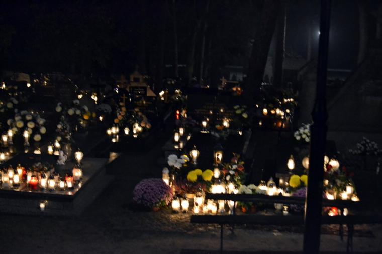 Głęboka w treści i zachęcająca do refleksji, ale i przemiany życia była ta przytoczona w rozważaniu legenda. Czy potrafimy odwiedzić, pocieszyć, dodać otuchy, być przy człowieku pogrążonym w smutku, płaczącym, biednym, głodnym, pragnącym sprawiedliwości. Czy potrafimy zdobyć się na zwykły ludzki gest? Być może to właśnie od tych zwykłych, pozornie nic nie znaczących gestów świadczących o miłości wobec bliźnich będzie zależało co usłyszymy od Boga, gdy przyjdzie nam zdać sprawę z naszego życia. Pan ofiarował nam czas, ale także przykład życia tak wielu świętych. Oni mogli osiągnąć świętość, możemy i my. Czy osiągniemy? Po Mszy Świętej alejkami wokół Sanktuarium wyruszyła procesja, podczas której przy pięciu stacjach modliliśmy się za zmarłych: kapłanów, biskupów, papieży, za rodziców, rodzeństwo, dziadków, krewnych, przyjaciół. Przy trzeciej stacji modlitwą objęliśmy zmarłych parafian, sąsiadów. Nie zabrakło także modlitwy w intencji tych, których miejsca wiecznego spoczynku nie znamy, a także za tych którzy zginęli obozach koncentracyjnych. Przy piątej stacji modliliśmy się za wszystkich zgromadzonych na cmentarzu prosząc dla nich o pragnienie osiągnięcia świętości. Modlitwą objęta została także ta osoba, którą jako pierwszą spośród zebranych Pan powoła do siebie. Nie wiemy kto to będzie, to wie tylko Bóg. Niewątpliwie modlitwa przy tej stacji stanowiła okazję do tego, by zadać sobie pytanie- czy jestem przygotowany ( przygotowana) na spotkanie z Panem. Uroczystość uświetniła orkiestra parafialna. O godz. 19:00 w sanktuarium spotkaliśmy się na modlitwie różańcowej połączonej z wypominkami. Mimo padającego deszczu jeszcze w późnych godzinach wieczornych wielu przemierzało cmentarne alejki, zatrzymując się przy grobach bliskich, przyjaciół, znajomych. Ofiarowana modlitwa, położone na grobach kwiaty, płonące lampki są dowodem na to, że o nich pamiętamy…