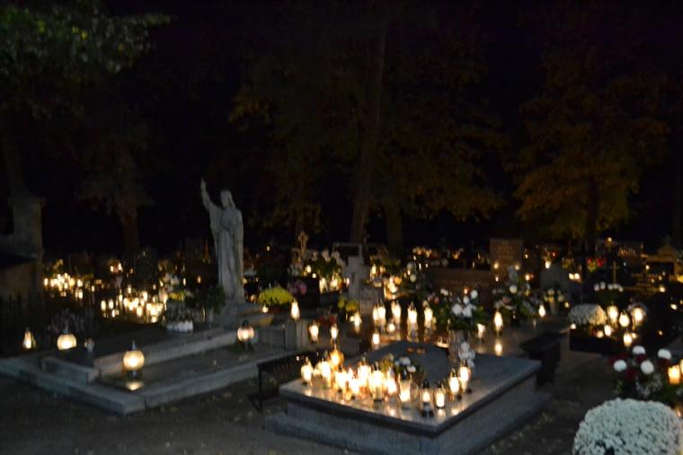 Tak jak podczas każdej Eucharystii Pan zastawił dla nas stół, wielu skorzystało z zaproszenia i przyjęło Komunię Świętą zapewne ofiarując ją za swoich bliskich zmarłych. Po końcowym błogosławieństwie odbyła się procesja z modlitwami za zmarłych. Modlitwie przewodniczył ks. kan. Krzysztof Ordziniak. Przy pierwszej stacji modliliśmy się za zmarłych biskupów, kapłanów, diakonów, braci i siostry zakonne. W sposób szczególny polecaliśmy kapłanów, którzy posługiwali w naszej wspólnocie parafialnej. Druga stacja była miejscem modlitwy za zmarłych rodziców i przodków. Ważna jest pamięć o tych, którzy przekazali nam życie, wiarę, troszczyli się o przekaz tradycji. Przy trzeciej stacji polecaliśmy miłosierdziu Bożemu braci, siostry, dzieci, współmałżonków, krewnych, rodziców chrzestnych, wychowawców, dobrodziejów. To ważne w naszym życiu osoby, które zostały nam postawione na naszej drodze do nieba, ci od których doświadczyliśmy wiele dobra. Kolejna stacja stała się okazją do modlitwy za wszystkich zmarłych spoczywających na naszym cmentarzu, za poległych i ofiary wojen. Przy ostatniej stacji modlitwą objęliśmy wszystkich zmarłych, których wiarę znał jedynie Bóg i o których Kościół zawsze pamięta.