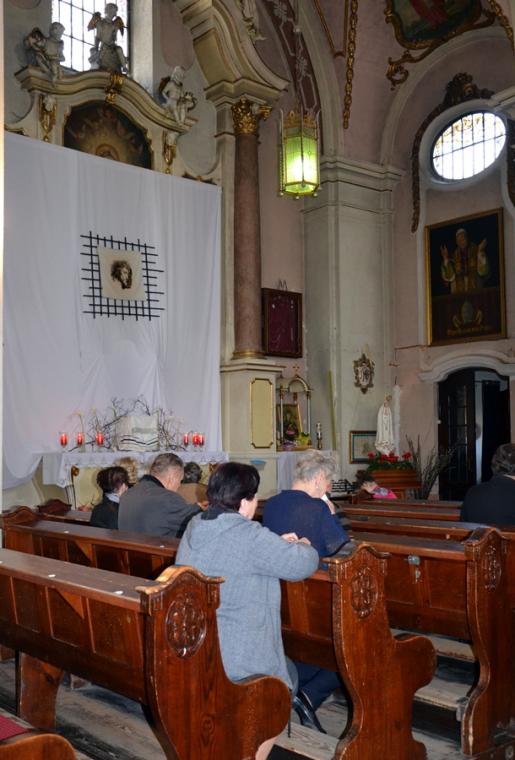 O godz. 15:00 do kościoła przybyli czciciele Bożego Miłosierdzia z naszej parafii. Zgodnie z życzeniem jakie wyraził Pan Jezus w słowach skierowanych do św. Faustyny rozpoczęliśmy nowennę do Miłosierdzia Bożego. Modlitwie przewodniczył ks. kan. Krzysztof Ordziniak.