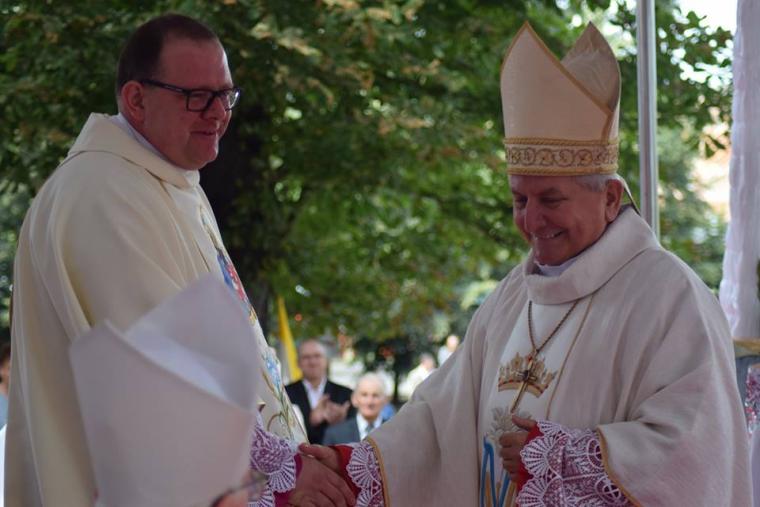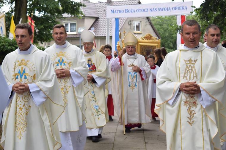 Do Sanktuarium Matki Bożej Pocieszenia od wczesnego rana przybywali pielgrzymi w pieszych pielgrzymkach wraz ze swoimi duszpasterzami, wśród których znalazła się parafia św. Mikołaja z Benic z proboszczem ks. Rafałem Kopisem, parafia p.w. św. Jana Chrzciciela z proboszczem ks. Krzysztofem Ślicznym a także parafia p.w. św. Ap. Piotra i Pawła w Krotoszynie z ks. Andrzejem Szulcem i wielu innych regionów. Po raz pierwszy przybyła także Pielgrzymka Rowerowa z parafii p.w. św. Wojciecha w Kobiernie. Przybyli pielgrzymi, po przywitaniu przez kustosza ks. kan. Łukasza Żurawskiego, wzięli udział w Pontyfikalnej Sumie Odpustowej, przy ołtarzu polowym, której przewodniczył J. E. ks. bp Edward Janiak, Biskup Kaliski.