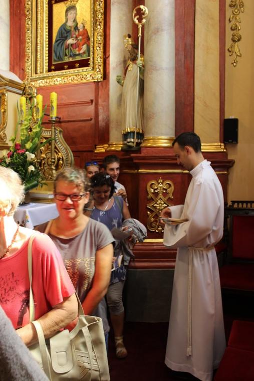 Do wielu z nich zapraszamy bliskich nam ludzi, szczególnie wtedy, gdy przeżywamy radość. Trudniej, gdy dotyka nas cierpienie, bo tu naprawdę trzeba nam przyjaciół wypróbowanych. Co roku takich wypróbowanych przyjaciół, my osoby niepełnosprawne, z różnych stron diecezji kaliskiej, spotykamy zawsze w sobotę przed ostatnią niedzielą sierpnia, kiedy wszystkie drogi prowadzą do Lutogniewa, a w sercu pojawia się pragnienie aby jeszcze raz spojrzeć w oczy Matki Bożej Pocieszenia. Pragnienie jest tym większe, bo wiemy, że Ona zawsze zauważa nasze problemy, może nam wiele wyprosić u Jezusa i co najważniejsze wzywa nas do tego, by iść za Nim, by trwać w Nim i wypełniać Jego przykazania. No to wyruszyliśmy w sobotni poranek sprzed kościoła św. Apostołów Piotra i Pawła w Krotoszynie w XVII Pielgrzymce osób niepełnosprawnych do Sanktuarium Matki Bożej Pocieszenia w Lutogniewie. Przewodnikiem tej wyjątkowej grupy był ks. kan. Grzegorz Jóźwicki proboszcz parafii p. w. św. Apostołów Piotra i Pawła w Krotoszynie, którego wspomagali ks. Michał Włodarski, ks. Piotr Dobrychłop oraz ks. Krzysztof Dończyk. W tych wyjątkowych rekolekcjach w drodze towarzyszyły nam także nasze rodziny, jak i przyjaciele, którzy często rezygnując czasem z ciekawszej formy spędzenia wolnego czasu, postanowili pomóc nam w spełnieniu naszego marzenia. Nasze pielgrzymowanie to przede wszystkim modlitwa, wyrażana również wspólnym śpiewem, która jest także byciem z drugim człowiekiem. Pielgrzymować to też unieść swoją słabość, niepełnosprawność, przyjąć pomoc drugiego człowieka. Pielgrzymować znaczy w końcu dojść do celu ~ ucieszyć się z wypełnionej obietnicy, z wyrażonej duchem i ciałem modlitwy. Na powitanie strudzonych, ale jakże szczęśliwych pielgrzymów, wyszedł ks. kan. Łukasz Żurawski, kustosz tutejszego Sanktuarium, wraz z klerykami; Karolem Raczakiem, Jędrzejem Grobelnym, Mikołajem Wawrzyniakiem aby jeszcze uroczyściej przy bijących dzwonach, wprowadzić nas przed obraz Matki Bożej Pocieszenia. Po powitaniu przez księdza kustosza, nie kryjącego swej radości z naszej obecności i przedstawieniu grup pielgrzymkowych oraz osób, które przybyły indywidualnie z terenu całej diecezji kaliskiej, w oczekiwaniu na najważniejsze spotkanie tego wyjątkowego dnia, po raz kolejny wyraziliśmy swoją radość we wspólnym śpiewaniu. O godzinie 10:00 uczestniczyliśmy w uroczystej Eucharystii, którą odprawił ks. kan. Grzegorz Jóźwicki. W koncelebrze stanęli: ks. Michał Włodarski, ks. Krzysztof Dończyk. Ks. kan. Grzegorz w słowie skierowanym do pielgrzymów, przypomniał nam o darze wdzięczności wobec osób które towarzyszą nam w naszym codziennym pielgrzymowaniu. Niestety, w zabieganiu, w poczuciu samowystarczalności i bezsprzecznych racji często zapominamy o swoim opiekunie, może trochę słabszym od nas, może chodzącym o kulach, jeżdżącym na wózku. Trzeba Bogu dziękować za Anioły, które do nas posyła, a chcące dawać nam oparcie, gdy jest ciężko, gdy trud codzienności zbyt mocno nas przygniata. Dziękować za każdego jednego człowieka, którego Bóg stawia w konkretnym celu na naszej drodze, tego znanego i nieznanego. Po zakończonej Eucharystii jeszcze raz swoje słowa skierował do nas ksiądz kustosz, który zaprosił nas do uczczenia relikwii świętej Siostry Faustyny Kowalskiej, wspólnego odmówienia Litanii do Matki Bożej Pocieszenia, a także do przejścia wokół ołtarza. Nasze radosne i pełne wzruszeń spotkanie zakończyliśmy w ogrodach proboszczowskich, gdzie w „Altance u Plebanka”, czekały na nas pyszne zupy oraz smażone kiełbaski, przygotowane przez tutejszych parafian oraz wiele innych wyjątkowych atrakcji.