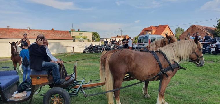 W godzinach popołudniowych odbył się przejazd i zaprzęgów konnych w ramach X Pielgrzymki Konnej, która wraz V Pielgrzymką Motocyklową uczestniczyła Eucharystii odprawionej przez ks. Mirosława Ziembińskiego. Paradą motocyklową uczestnicy pielgrzymki podziękowali za tak piękne kolejne już spotkanie. Główne uroczystości odpustowe zakończyły się nabożeństwem różańcowym i Apelem Jasnogórskim.