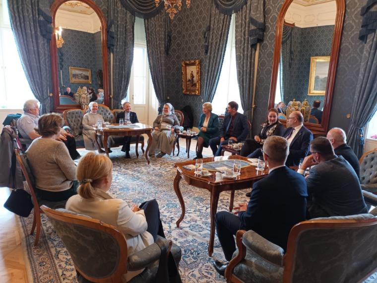 W poniedziałek, 7 października delegacja gości XXX Dni Polskiej Kultury Chrześcijańskiej wraz z członkami Zarządu Stowarzyszenia św. Wojciecha oraz ks. proboszczem i siostrami misjonarkami, na zaproszenie pani ambasador, wicedyrektora departamentu ds. Kontaktów międzynawowych dr Orsolya Kovács złożyła wizytę w Pałacu Prezydenta Węgier.
