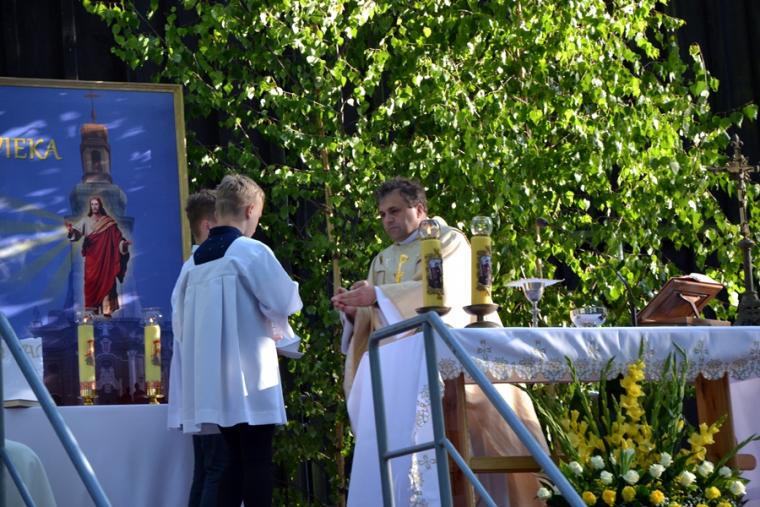 Zaakcentował, że zgromadził nas Boży Stół, na którym Jezusa jako Chleb kładzie nam samego siebie. Celebrans zwrócił uwagę, że powinniśmy Mu za to dziękować, wielbić Go, ale przede wszystkim ufać jego dobroci. Zaznaczył jednak, że nasza wdzięczność jest niepełna jeśli nie potrafimy na Boże miłosierdzie odpowiedzieć miłosierdziem wobec bliźnich. Kończą kaznodzieja powiedział: „Boże miłosierdzie to wielka „ słabość” Boga do człowieka, ale dzięki tej „słabości” istniejemy. Ona nam mówi, że Bóg nie zmęczył się człowiekiem, dzięki niej doświadczamy Jego dobroci, przebaczenia. To właśnie dzięki tej „słabości” Bóg wciąż na nowo lituje się nad człowiekiem, troszczy się, okazuje miłosierdzie i prosi zacznij od nowa”.